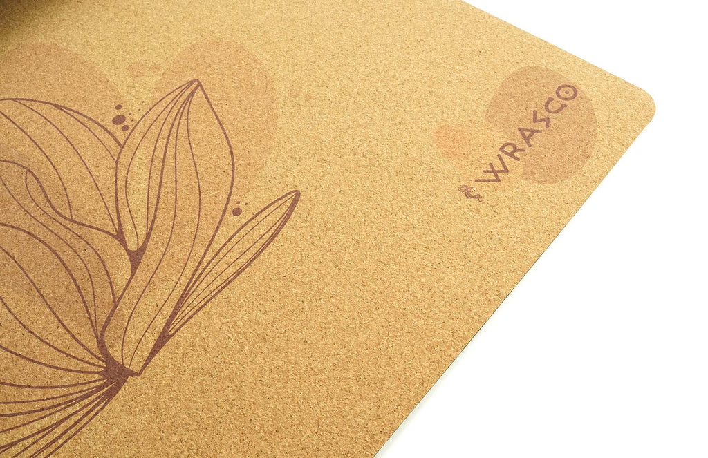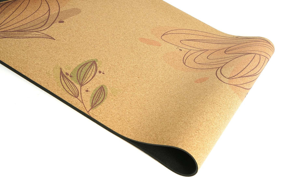Wrasco brand yoga mat made with cork and natural rubber with an overall thickness of 5mm (1/4"). Each mat is 24" x 72" with a weight just under 6 pounds. This beautiful design provides a unique relaxing pattern featuring flower petals.